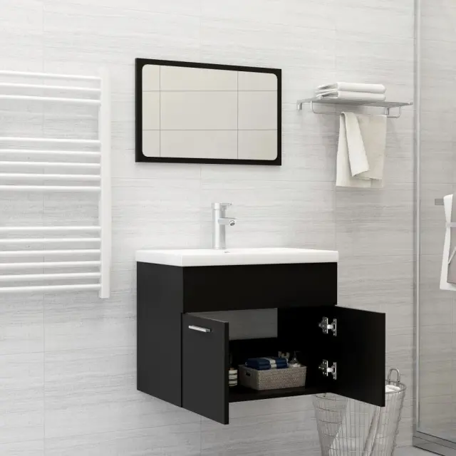 Komplet kopalniškega pohištva - Kopalniški sestavi črne barve iverna plošča