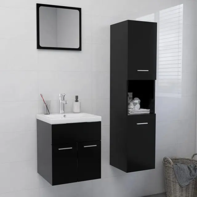 Komplet kopalniškega pohištva - Kopalniški sestavi črne barve iverna plošča