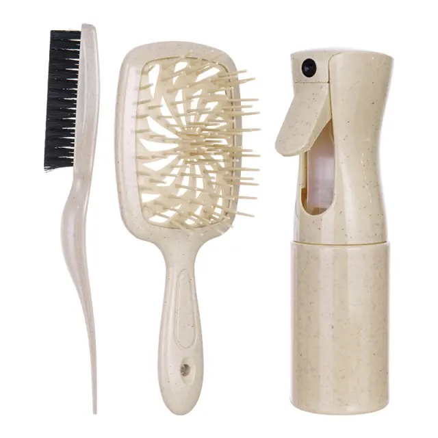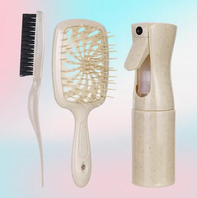 Vsestranski in priročen: Ta komplet s 3 kosi vključuje krtačo z blazino za vsakodnevno oblikovanje, krtačo za razvozlavanje za lase brez vozlov in razpršilko za enakomerno nanašanje izdelkov za lase ali osvežitev las na poti. Kompaktna velikost krtač jih naredi idealne za potovanja in popravke na poti.