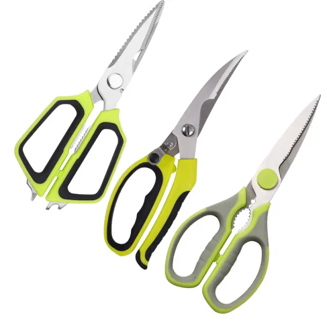 Vsestranska funkcionalnost: Ta komplet s 3 kosi vključuje vsestranske kuhinjske škarje, ki so kot nalašč za široko paleto opravil, od rezanja perutninskih kosti do rezanja zelišč. Ostri rezili brez težav režejo različne materiale, zaradi česar je priprava hrane enostavna.