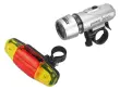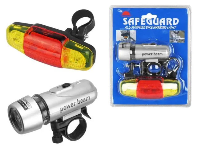 Komplet dveh svetilk za kolo na baterije, namenjenih osvetlitvi ceste pred in za kolesom. Sprednja svetilka zagotavlja močan žarek usmerjene svetlobe, ki bo povečal vidljivost v temi. Zadnja luč ima rumene in rdeče opozorilne lučke, kar povečuje vidnost osebe, ki vozi kolo.
