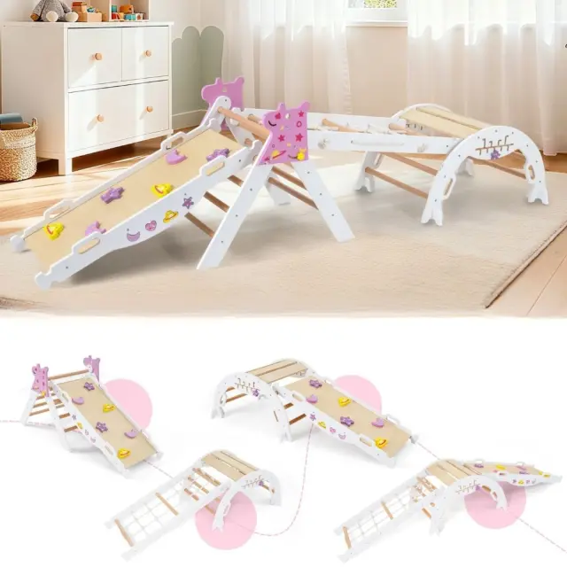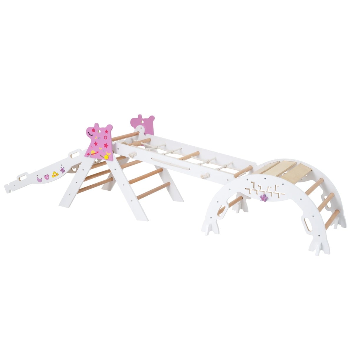 Komplet lestev s toboganom in plezalno steno, bel