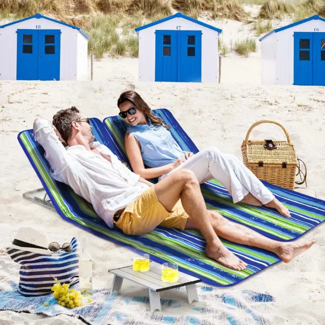 Komplet ležalnikov za plažo 2 kosa Podloge za plažo z mizo
