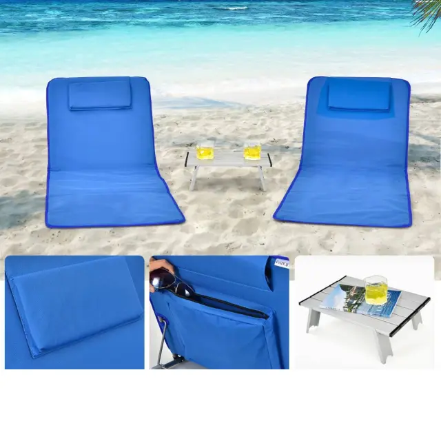 Komplet ležalnikov za plažo 2 kosa Podloge za plažo z mizo