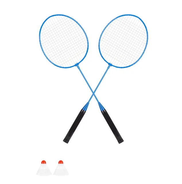 Komplet vključuje dva lahka in vzdržljiva loparja ter dve peresni žogici, kar omogoča pripravljenost za igro takoj, ko paket prispe na vaša vrata. Loparji so zasnovani z udobnim ročajem in trpežnim okvirom, ki zagotavljata dober oprijem in stabilnost med igro. Peresne žogice so narejene iz visokokakovostnih materialov, ki omogočajo natančen in stabilen let žoge skozi zrak.