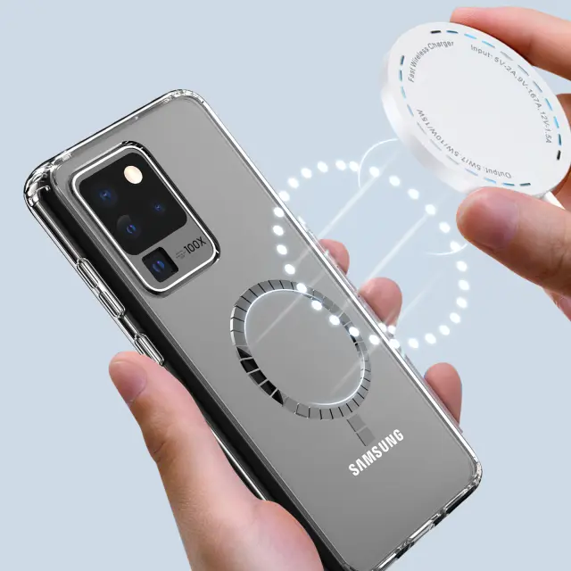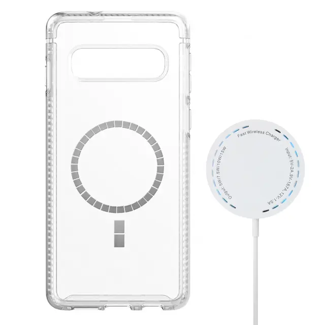 Komplet za polnjenje MagSafe, sestavljen iz polnilnika in adapterja z magnetnim lepilnim obročem. Brezžični polnilec Magsafe za polnjenje vaših modelov iPhone 12 in drugih mobilnih naprav. Največja moč 15 W: podpira hitro brezžično polnjenje za iPhone 12 / 12 mini / 12 Pro Max in druge QI naprave. Priložen je magnetni in lepilni obroček, ki se pritrdi na notranjo stran ohišja.