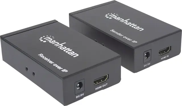 Komplet Manhattan 1080p HDMI Over IP Extender Razširi signal 1080p z omrežnim stikalom in enim omrežnim kablom do 120 m IR podpore črno Manhattan 2079