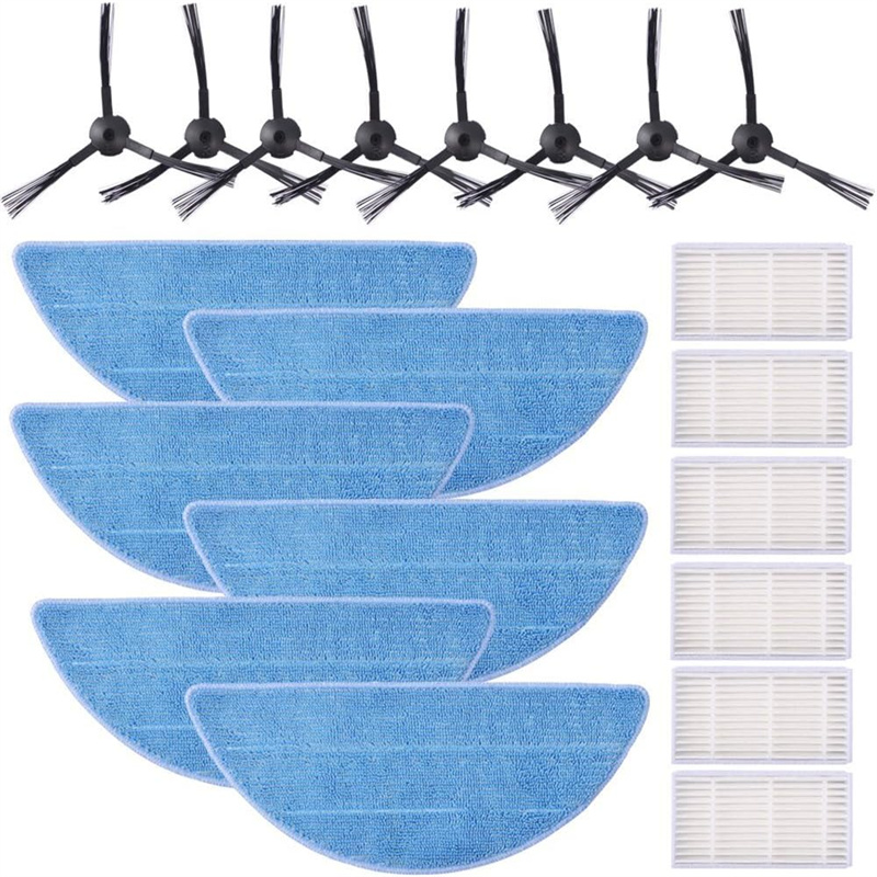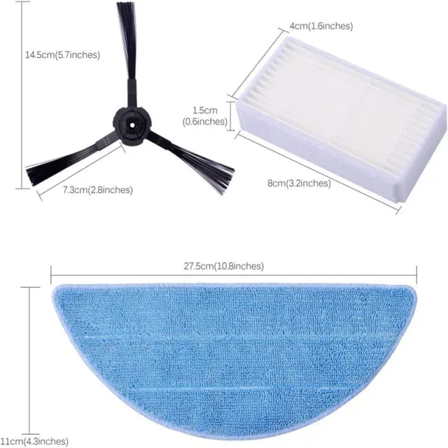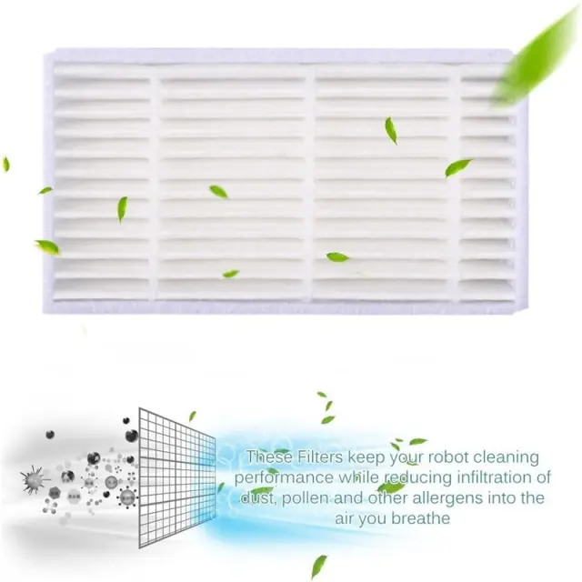 Izboljšana učinkovitost čiščenja: Komplet vključuje visokokakovostne stranske ščetke, HEPA filtre in krpo za brisanje, ki skupaj učinkovito odstranjujejo umazanijo, prah in alergene s tal.