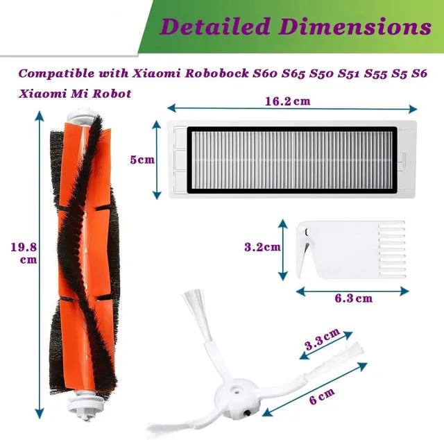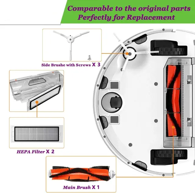 Popolna združljivost: Ta komplet dodatne opreme je posebej zasnovan za robotske sesalnike Roborock in zagotavlja brezhibno združljivost in optimalno delovanje z modeli Roborock S50, S51, S55, S5 Max, S60, S60, S65.