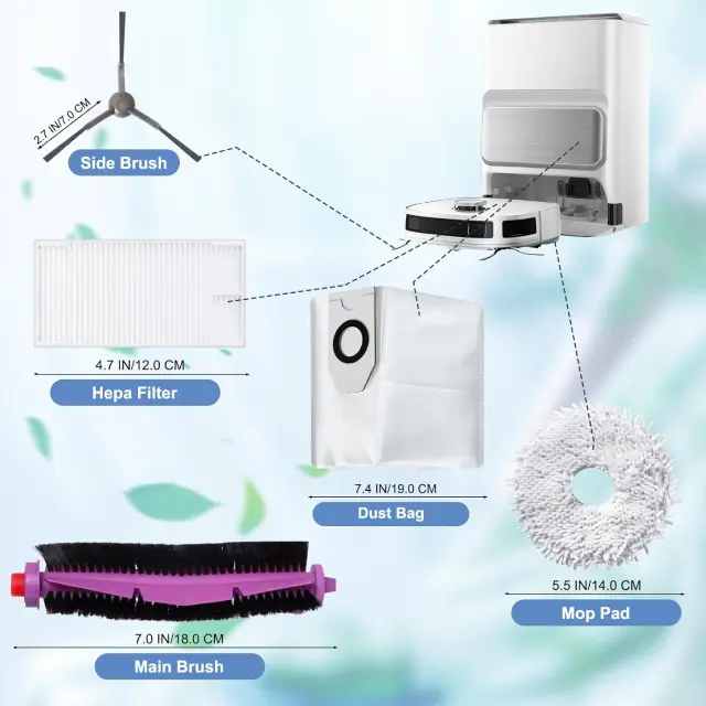 Popolna združljivost: Ta komplet nadomestnih delov je popolnoma združljiv z robotskim sesalnikom Eureka J12 Ultra in robotskim sesalnikom Midea V12, kar zagotavlja brezhibno integracijo in optimalno delovanje.