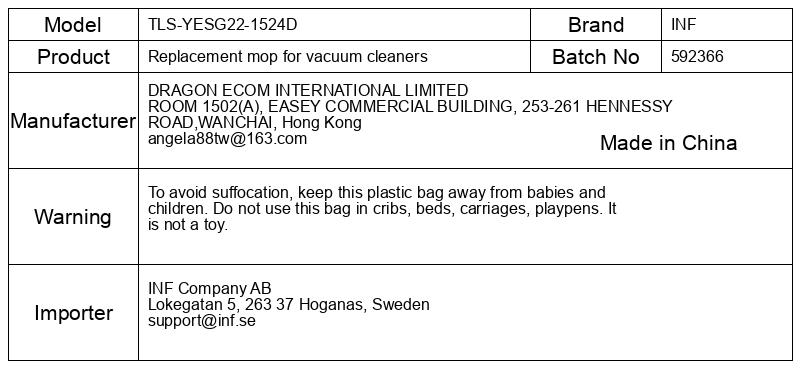 Da bi se izognili zadušitvi, hranite to plastično vrečko stran od dojenčkov in otrok. Te vrečke ne uporabljajte v zibelkah, posteljah, vozičkih, stajicah. To ni igrača.