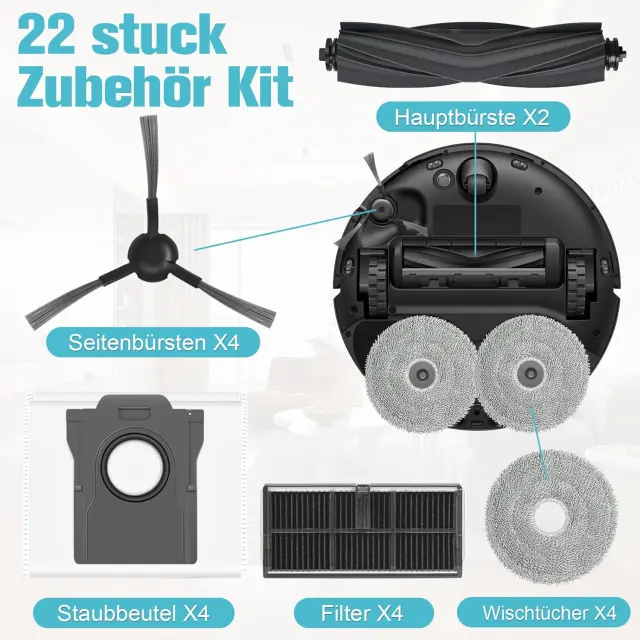 Celovito čiščenje: Komplet vključuje vrsto bistvenih pripomočkov za reševanje vseh vaših potreb po čiščenju, od prahu in ostankov do umazanije in umazanije. Poskrbite, da bo vaš robotski sesalnik deloval kar najbolje in ohranite dom brezhibno.