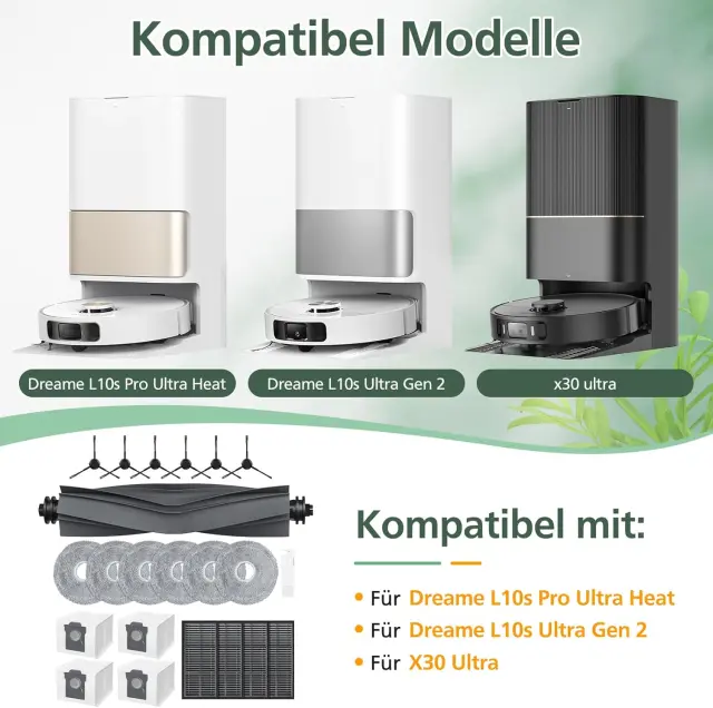 Popolna združljivost: Ta komplet dodatne opreme je posebej zasnovan za robotske sesalnike Xiaomi Dreame L10s Pro Ultra Heat, L10s Ultra Gen 2 in X30 Ultra, ki zagotavlja brezhibno združljivost in optimalno delovanje.