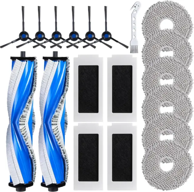 Celovit komplet nadomestnih delov: Ta komplet vsebuje celoten nabor nadomestnih delov za vaš sesalnik ECOVACS T30 Omni, T30 PRO Omni, T30S ali T30S PRO. Zagotavlja, da vaša naprava ohranja optimalno učinkovitost čiščenja. Redna zamenjava teh delov pomaga podaljšati življenjsko dobo vašega sesalnika in ohranja vaš dom brezhiben. Komplet vključuje bistvene komponente, ki zagotavljajo nemoteno in učinkovito delovanje vašega robotskega sesalnika, kar ponuja veliko vrednost in udobje.