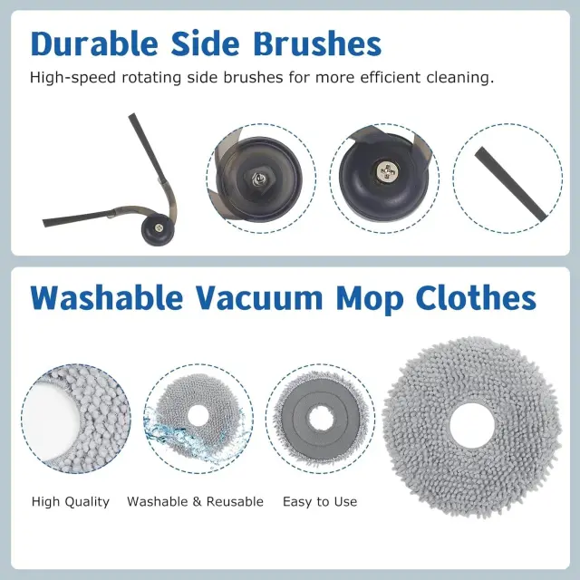 Stroškovno učinkovito vzdrževanje: Prosimo, upoštevajte: to niso originalni deli. Naložba v ta nadomestni komplet je stroškovno učinkovit način za vzdrževanje vašega robotskega sesalnika Roborock Qrevo. Namesto da bi zamenjali celotno enoto, preprosto zamenjajte obrabljene dele, da bo deloval kot nov. Ta komplet zagotavlja več nadomestnih delov za vsako komponento, kar zagotavlja, da imate dovolj zalog za daljšo uporabo. Prihranite denar in zmanjšajte količino odpadkov z izbiro te priročne in cenovno ugodne rešitve za vzdrževanje, ki je združljiva z Roborock. Ohranite svoj robotski sesalnik v vrhunskem stanju, ne da bi pri tem obremenjevali svoj proračun.
