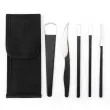Ta komplet je izdelan iz visoko manganskega jekla in je odličen za varno lakiranje nohtov, odstranjevanje odmrle kože in otiščancev itd. Priložena je vrečka za shranjevanje, ki zagotavlja enostavno prenašanje.