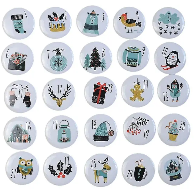 Komplet okroglih gumbov za božični adventni koledar s 1–25 številkami, 3,8 cm, 80 g