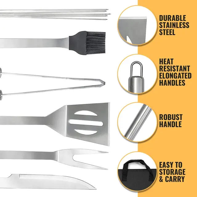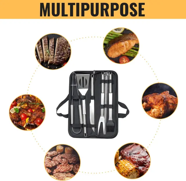 Ta komplet orodij za peko na žaru je popolna izbira za sladokusce, peko na žaru ljubitelji, kuharji, ljubitelji kampiranja. Popoln komplet za peko na žaru za piknik, žar na dvorišču, kampiranje in pohodništvo.