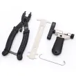 Napredno orodje za odpiranje in zapiranje: Klešče v kompletu so zasnovane z mislijo na natančnost in učinkovitost. Deluje kot odpiralnik in zapiralnik za hitro in enostavno nastavitev členov verige.