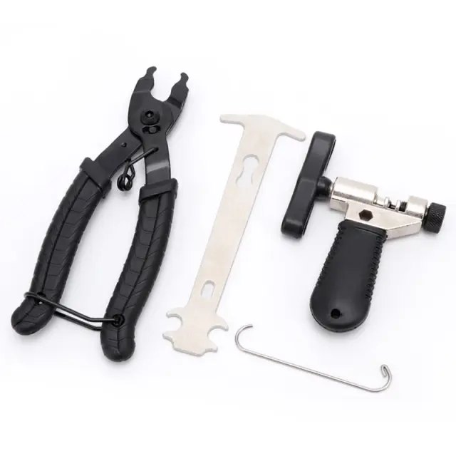 Celoten komplet: Komplet vsebuje vsa potrebna orodja za vzdrževanje verige. Poleg zlagalnika členov kolesa boste našli tudi merilnik verige za merjenje obrabe verige in rezalnik verige za enostavno odstranjevanje členov.