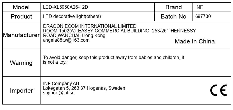 Da bi se izognili nevarnosti, izdelek hranite izven dosega dojenčkov in otrok, saj ni igrača.