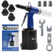 Visokokakovosten pnevmatski kovičar, zasnovan za uporabo s slepimi zakovicami s premerom od 2,4 mm do 4,8 mm. Omogoča vam izdelavo trajnih povezav z zakovicami iz aluminija, nerjavečega jekla, jekla in bakra.