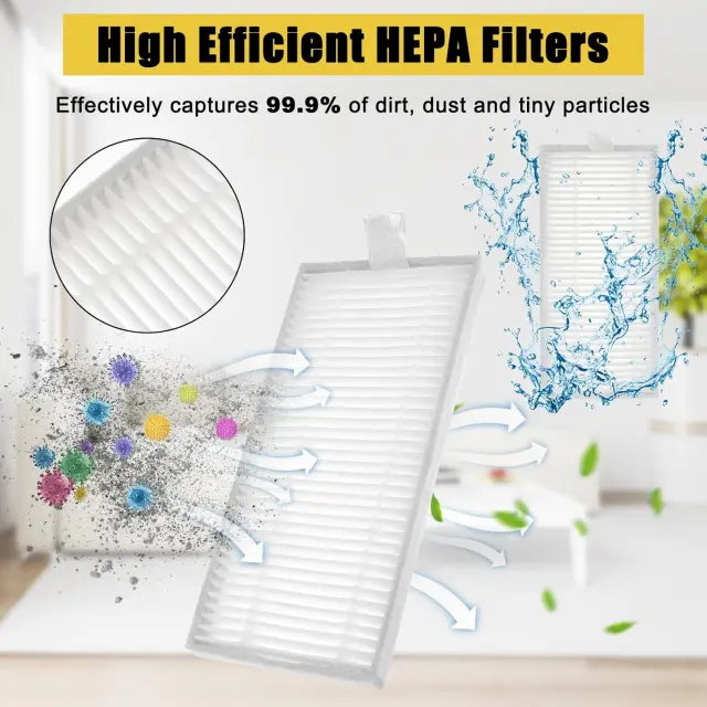 Enostavna namestitev in vzdrževanje: dele je mogoče hitro in enostavno zamenjati, kar vam omogoča, da ohranite učinkovitost čiščenja robotskega sesalnika z minimalnim naporom. Ohranite svoj sesalnik v odličnem stanju s tem priročnim kompletom.