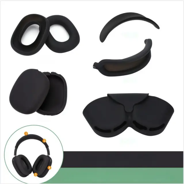 Komplet silikonskih zaščitnih etuijev 5-v-1 za AirPods Max: naglavni trak, nosilec, ušesne kapice, ohišje in torba za shranjevanje