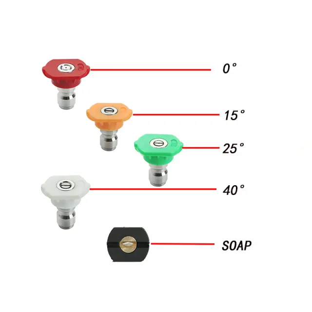 Vsestranske 5-barvne šobe: Komplet vključuje pet različnih barvnih šob, od katerih vsaka ponuja drugačen vzorec pršenja za vsestransko uporabo pri čiščenju.