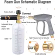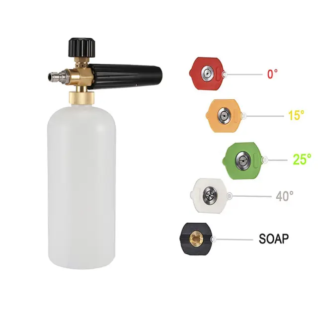 Visokotlačno čiščenje: Ta komplet steklenic za peno je zasnovan za visokotlačno čiščenje, ki učinkovito odstranjuje umazanijo z vašega avtomobila, motornega kolesa ali drugih površin.