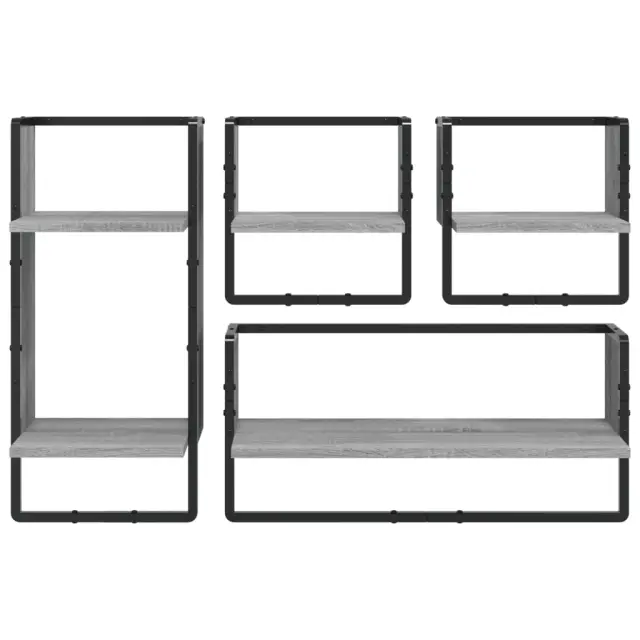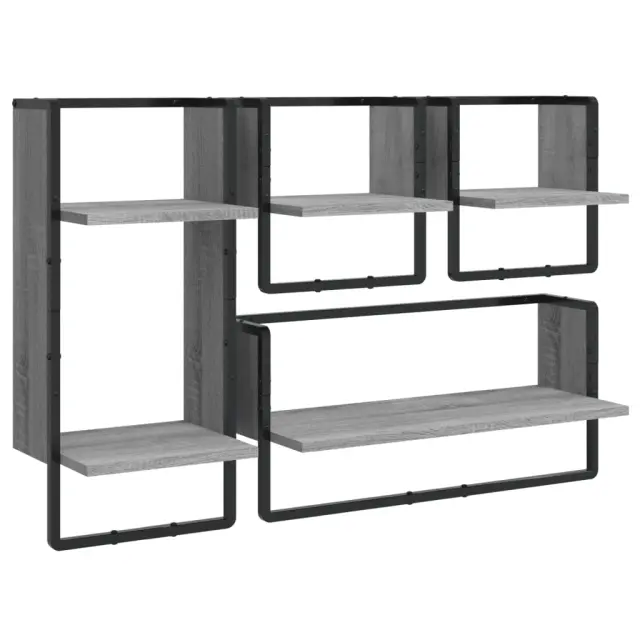 Komplet stenskih polic - Stenske Police - Viseča polica s prečkami 4-delni siva sonoma inž. les