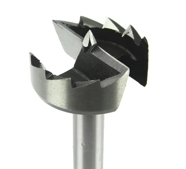Centrirna konica olajša začetek vrtanja, dva stranska svedra pa učinkovito režeta materiale, kar ima za posledico natančne slepe luknje brez drobcev.