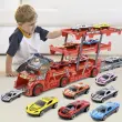 3 NIVOJI POLPRIKOLICE – avtovleka ima 3 nivoje za varen prevoz in shranjevanje avtomobilčkov, zahvaljujoč katerim otrok ne bo izgubil niti enega dragocenega avtomobila in jih bo lahko prevažal po dirkališčih po vsem svetu.