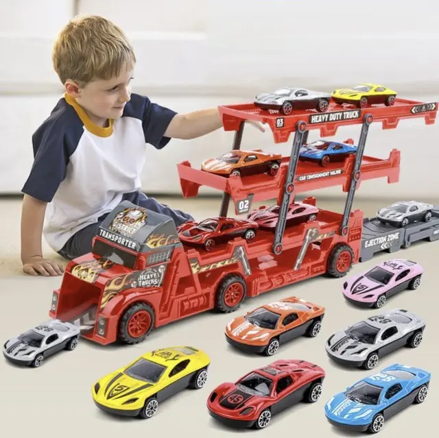 PRIKOLICA + 6 ULITIH AVTOMOBILOV – komplet sestavlja tovornjak in 6 avtomobilov. Avtovleka ima funkcijo zlaganja, zahvaljujoč kateri lahko enostavno odstranite avtomobile. Igrača je bila narejena zelo skrbno, z reprodukcijo vseh podrobnosti. Deluje realistično, kar otroka spodbuja k igri.