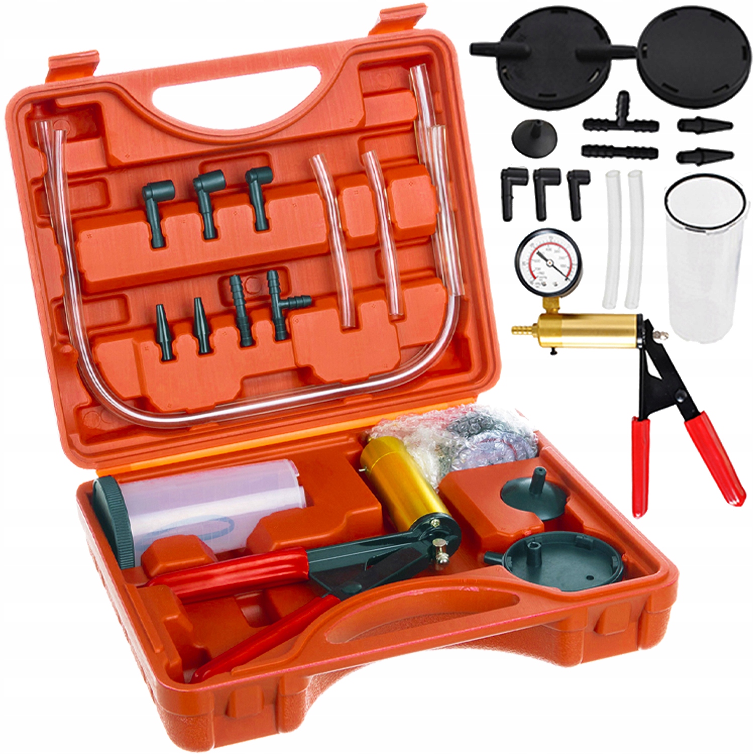 Ročna tlačna, vakuumska črpalka je naprava z velikim številom aplikacij. Ustvari vakuum do -1 BAR. Uporablja se za preverjanje avtomobilskih sistemov, katerih delovanje temelji na podtlaku. Komplet vam omogoča diagnosticiranje vseh dizelskih in bencinskih motorjev v skoraj vseh motorjih ali sistemih.