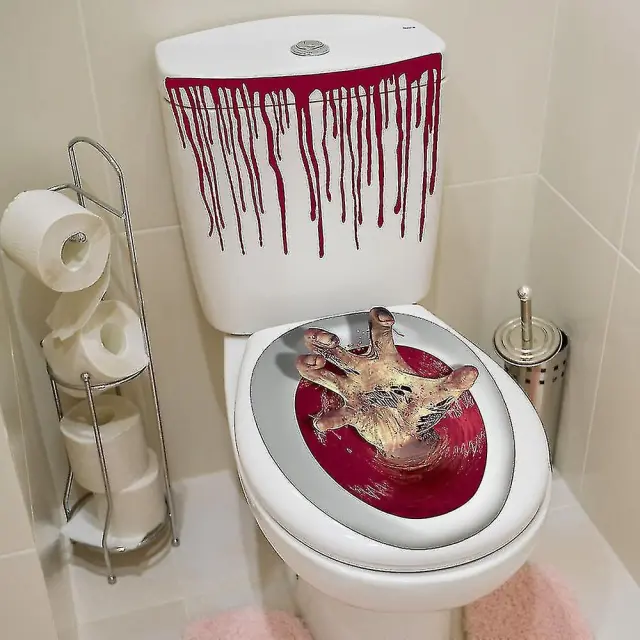 Komplet vinilnih nalepk za stranišče za noč čarovnic Bloody - Horrible Scary Home Decor - kopalnica Kričeča krvava temna bitja