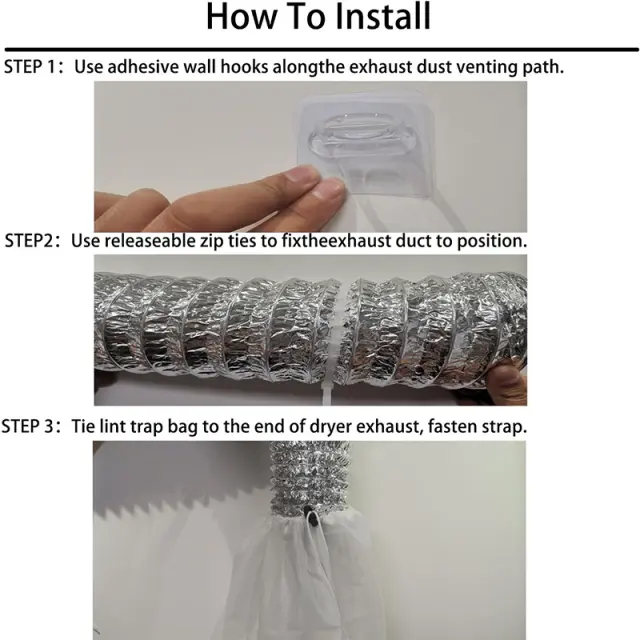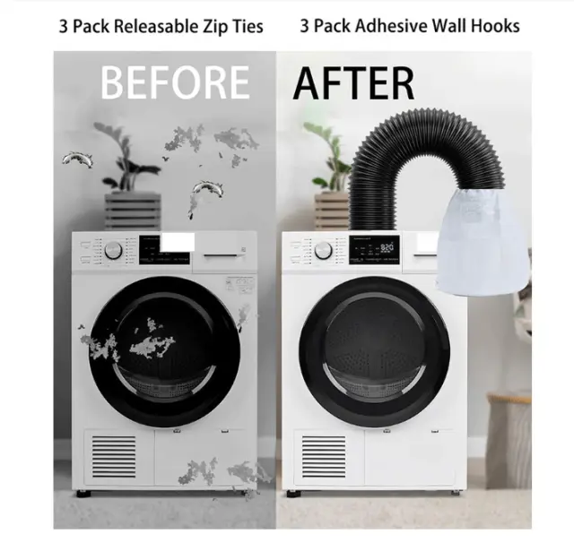 Enostavna namestitev: Vreča za lovljenje vlaken na zračniku sušilnega stroja je zasnovana za enostavno namestitev. Samolepilni trak preprosto pritrdite na vrečko in ga nato prilepite na želeno mesto. Močno lepilo zagotavlja varen oprijem in preprečuje uhajanje vlaken.