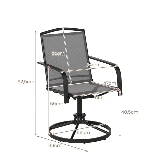 Komplet vrtni stoli vrtljivi 360° sivi 2 kosa.