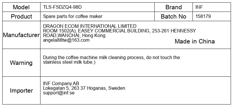 Med postopkom čiščenja mleka v kavnem aparatu se ne dotikajte cevi za mleko iz nerjavečega jekla.)