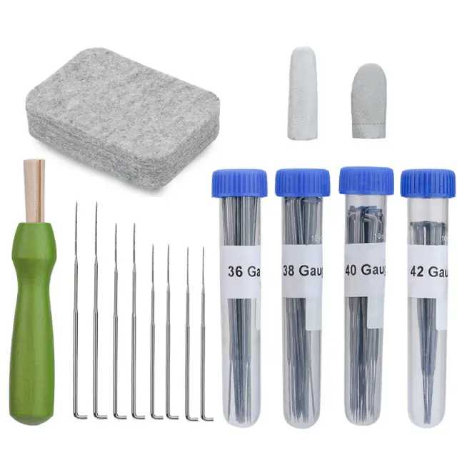 Različne igle: Komplet vsebuje različne igle za filcanje različnih velikosti, vključno s 15 grobimi iglami, 20 srednjimi iglami, 25 finimi iglami in 10 ekstra finimi iglami. To vam omogoča doseganje različnih učinkov filcanja in spopadanje z vrsto projektov.