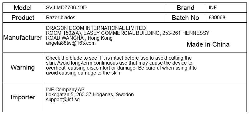 Pred uporabo preverite, ali je rezilo nepoškodovano, da preprečite ureznine kože. Izogibajte se dolgotrajni neprekinjeni uporabi, ki lahko povzroči pregrevanje naprave, kar povzroči nelagodje ali poškodbe. Pri uporabi bodite previdni, da ne poškodujete kože