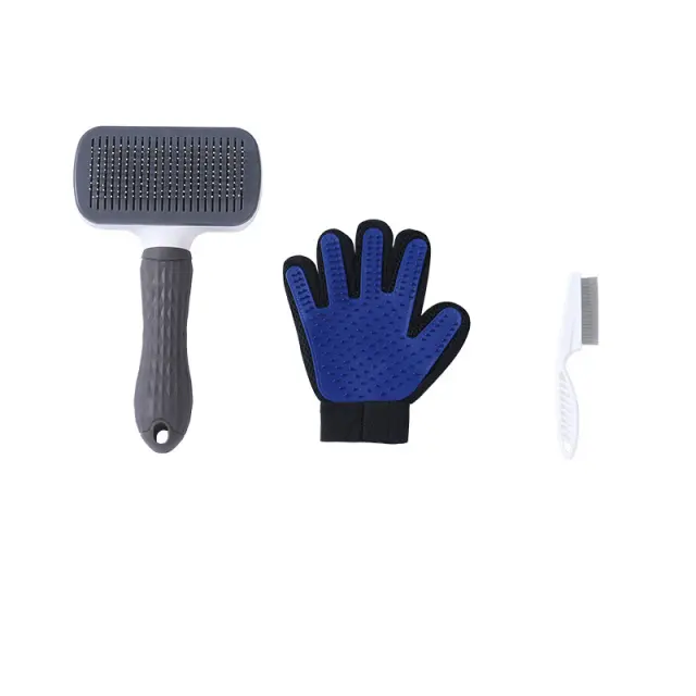 Vsestranski komplet za nego: Komplet ponuja celovito rešitev za nego s krtačo za odstranjevanje odpadne dlake, rokavico za nego za nežno masažo in odstranjevanje dlak ter glavnikom za bolhe za odstranjevanje zajedavcev.