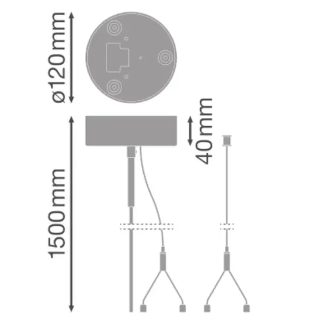 Set vzmetenja. Lastnosti izdelka: Kompletni komplet za obešanje (stropna priključna omarica, priključna sponka, 2 kabla za obešanje, prozorni kabel). Priključek s 5-polno dvojno priključno sponko za vtičnike. Stropna priključna omarica iz pločevine, prašno lakirana v beli barvi. Obešalni kabel in kabelske sponke iz nerjavnega jekla. Prednosti izdelka: Celoten komplet za obešanje za hitro in enostavno namestitev svetilke. Dolžina jeklenega kabla je nastavljiva zaradi sponke za hitro sprostitev. EAN: 4099854215537