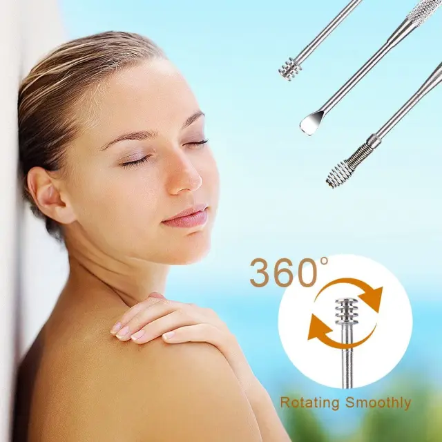 Ta komplet vsebuje 6 različnih orodij, ki vam omogočajo enostavno in učinkovito lajšanje srbenja in masiranje ušesnega kanala ob odstranjevanju ušesnega masla. Instrumenti so enostavni za čiščenje in razkuževanje.