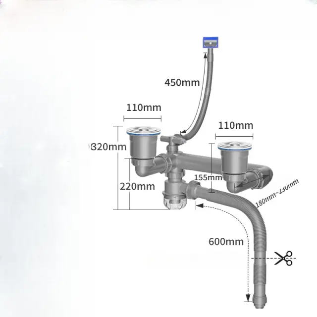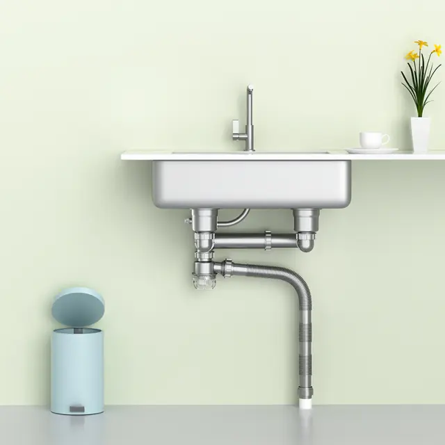 Prostoru prijazna zasnova: Ta komplet za odtok pod umivalnikom je zasnovan za zadnjo namestitev, zaradi česar je popoln za maksimiranje prostora pod umivalnikom. Idealen je za kuhinje, kjer šteje vsak centimeter.
