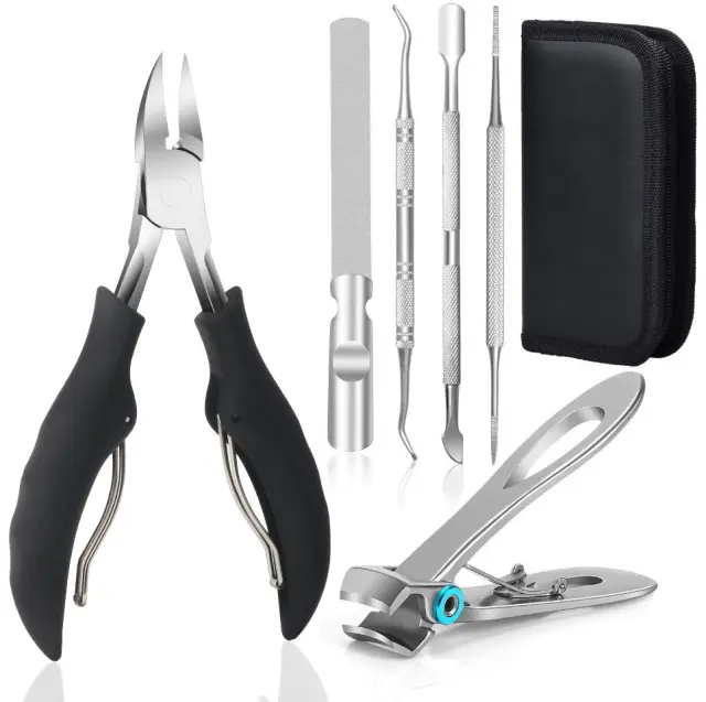 Set 6 pripomočkov za pedikuro iz visokokakovostnega nerjavečega jekla za profesionalno nego nohtov doma. Pripomočki za nohte so trpežni in varni za uporabo ter popolni pripomočki za debele in vraščene nohte. Vključno s primerom.