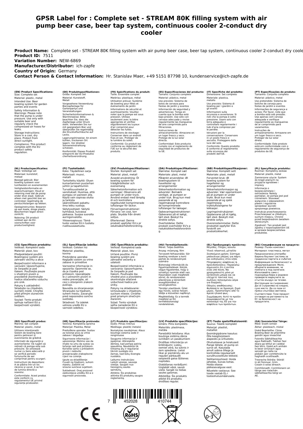 Tehnične specifikacije vključujejo zmogljivost do 80 litrov na uro, kar vam omogoča hitro postrežbo tudi ob večjih dogodkih. Enostavna uporaba in vzdrževanje sta ključni prednosti tega kompleta, saj vam ni treba skrbeti za dolgotrajno pripravo. Sistem je zasnovan tako, da ohranja pivo vedno sveže in hladno, kar omogoča, da vsaka postrega izkušnja postane nepozabna.