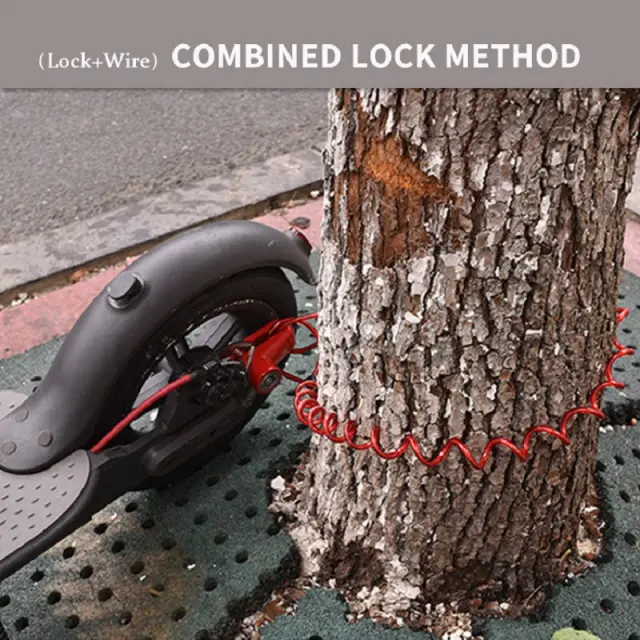 Ta ključavnica kolutne zavore uporablja visokokakovosten zaklepni valj iz cinkove zlitine, ki je lahek. Ključavnico lahko privijete v škatlo za ključavnico na sprednji strani skuterja. Shranite ga lahko v priloženo stojalo, žep ali torbo za enostavno prenašanje in shranjevanje.
