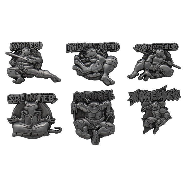 Teenage Mutant Ninja Turtles Komplet žebljičkov igra Omejen na samo 1987 po vsem svetu Komplet šestih zelo podrobnih emajliranih kovinskih značk Uradno licenčno blago
