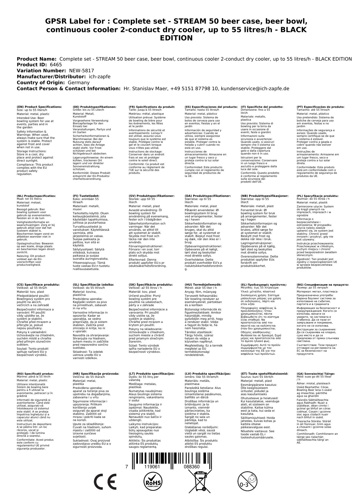 - Vključene komponente: Naprava Stream 50 za črpanje piva s 2 linijama suhega hlajenja, 1x regulator tlaka za 2 liniji CO2 3 bar, 1x jeklenka CO2 2,0 kg, 2x cevi CO2 1,5 m, 2x cevi za pivo s priključki John Guest 3/8" in 5/8" vsaka po 2,0 m, ključ za karbonizacijo "captive", 2x črpalka (izbira: brez, ravna, kombinirana, košara, Köpi)